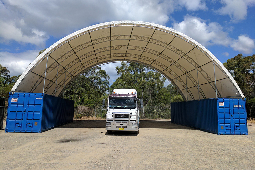 Request A QuoteContainer Dome with end wall to suit both General Purpose (GP) and High Cube (HC or HQ) Containers (General Purpose containers are approx. 2.6m high, High Cube containers are approx. 2.9m high).