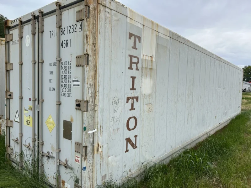 This2009 40-foot High Cube Refrigerated Storage Container(Unit #:CCR18757, Serial #:TRIU8612324) offers a dependable, temperature-controlled storage solution for commercial, industrial, or agricultural needs. Built with durability and insulation in mind, this unit is ideal for storing perishable goods, pharmaceuticals, beverages, or other temperature-sensitive products.Specifications:Year:2009Type:High Cube Refrigerated Shipping ContainerExterior Length:40 ftHeight:9’6″ (High Cube for additional vertical storage space)Max Gross Weight:74,960 lbsTare Weight:10,470 lbsNet Load Capacity:64,490 lbsInterior Volume:2,380 cu. ft.Serial Number:TRIU8612324Unit Number:CCR18757Key Features:Fully insulated for reliable temperature retentionRefrigeration unit intact (buyer to confirm operational status)Suitable for cold storage, backup refrigeration, or transportStructurally sound with solid floors and secure locking doorsHigh cube design for increased internal volume and stacking clearanceThis container is well-suited for both stationary cold storage and transport applications. Whether you’re managing seasonal overflow, food service operations, or industrial cooling needs, this unit offers excellent storage capacity and performance.