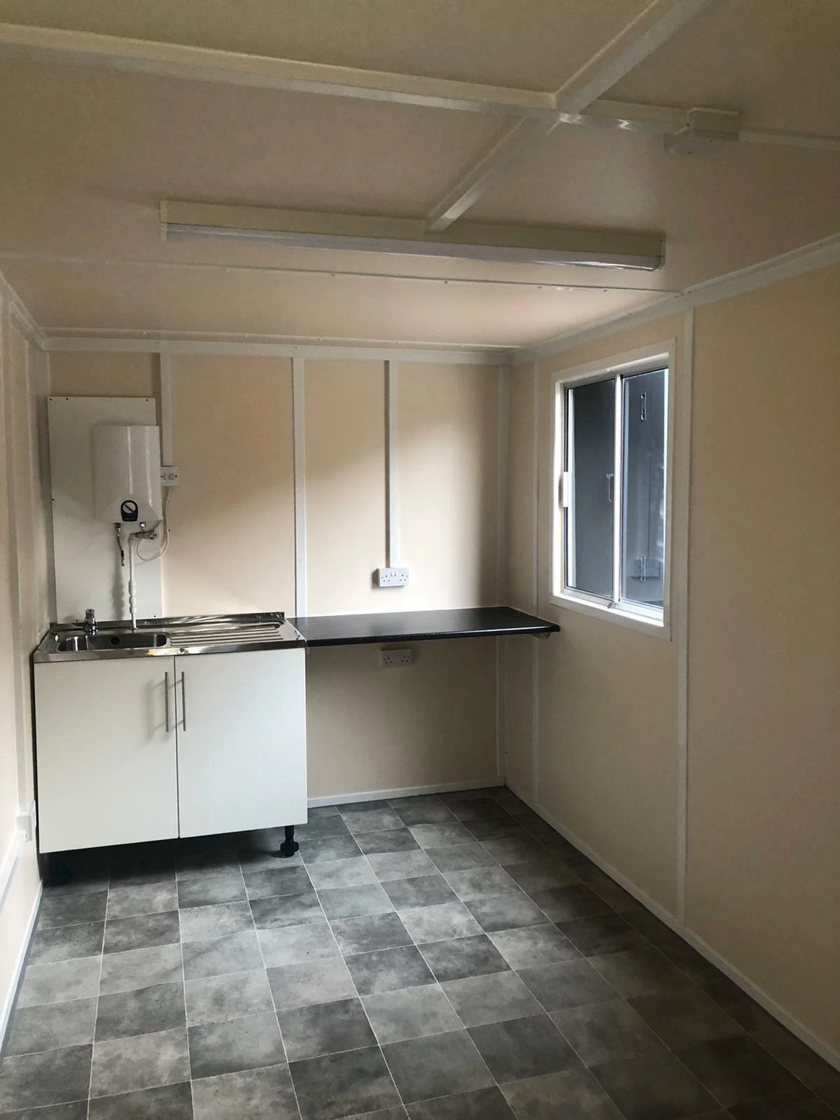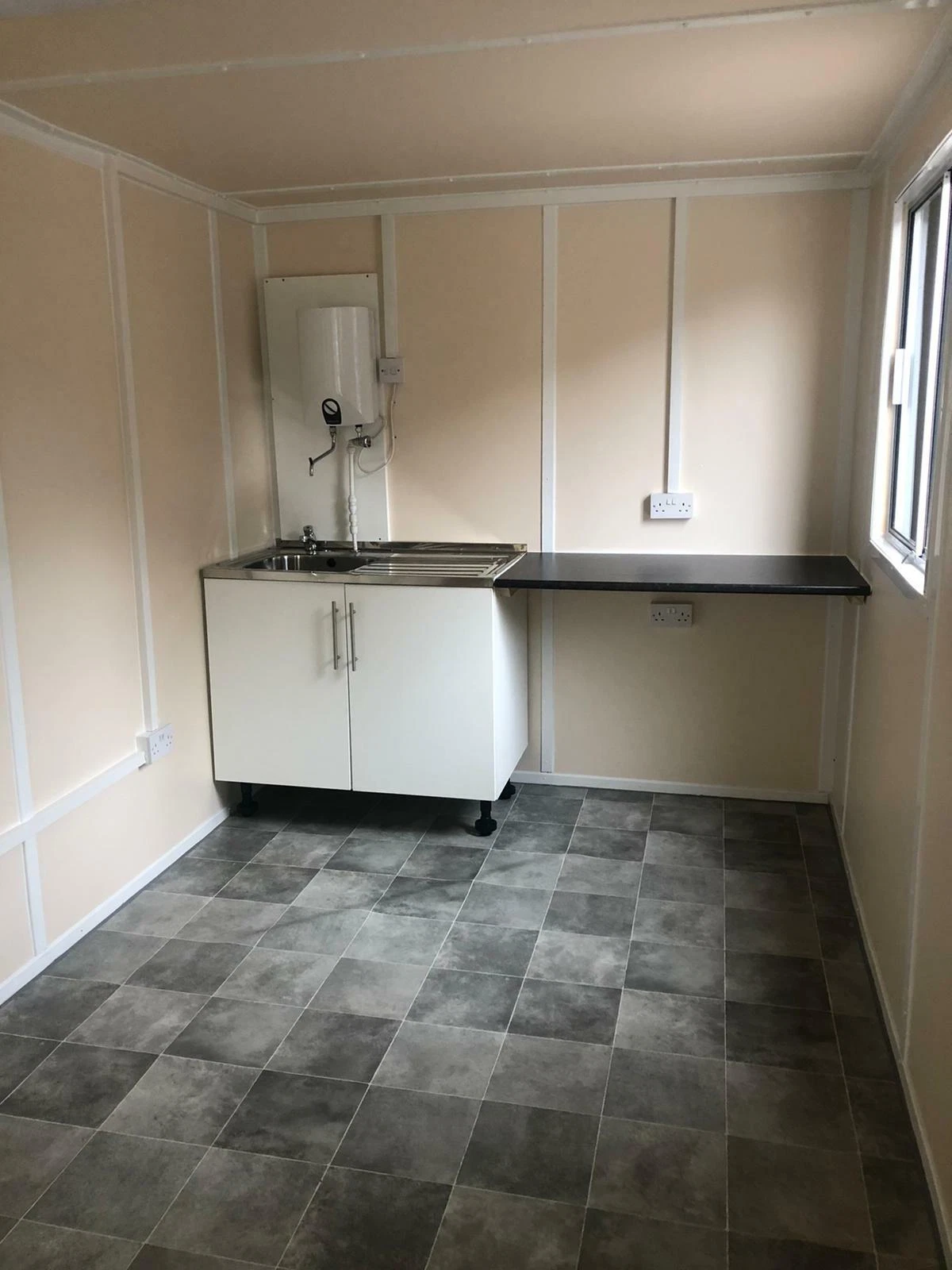 - Canteen Area: Includes a sink, taps, water heater, cabinets, and worktop to meet your food service needs.