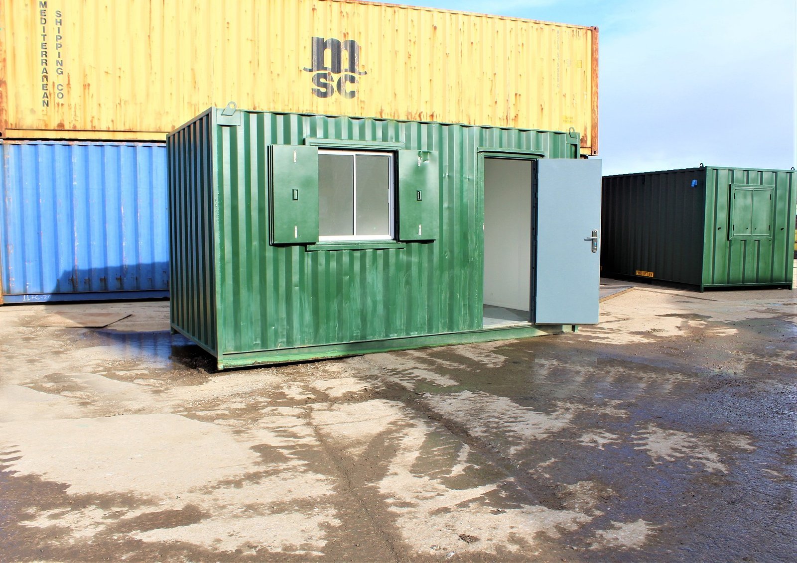 Modi Box Office Containers! Elevate your workspace with our 15-foot Modi Box Office, expertly crafted from durable and ultra-secure shipping containers. This functional and stylish office solution is perfect for a wide range of professional needs, designed with comfort and longevity in mind.