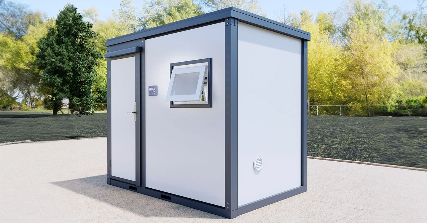Steel-framed construction, the Accessible/Disabled Toilet is a stand-alone building or can be connected to an existing building with mains power, sewerage and water.