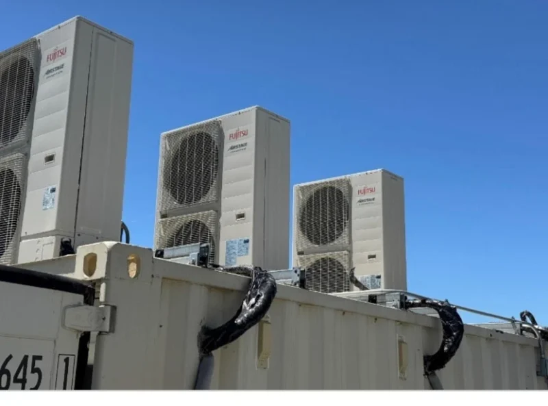 Thisused 20-foot refrigerated Conex shipping containeris a reliable and cost-effective solution for those in need of a climate-controlled unit. Previously used to cool tech equipment in a commercial facility, the container is now being sold due to site closure.Key Features:Refrigerated 20′ Conex container– Used but in solid working conditionModified with small perforationsfor internal wiring/accessibilityIncludes rooftop-mounted Fujitsu split air conditioning units(removed for safe transit, but fully included with sale)Ideal for cooling sensitive equipmentsuch as servers, tech gear, or other temperature-sensitive inventorySteel constructionoffers secure, weather-resistant protectionInsulated interiorfor temperature stabilityThis unit is perfect for data centers, remote job sites, or anyone needing a reliable, modified refrigerated container. With the included AC systems and pre-installed wiring access, it’s ready for your custom use.Note:AC units are included but shipped separately for safety. Reinstallation is straightforward.